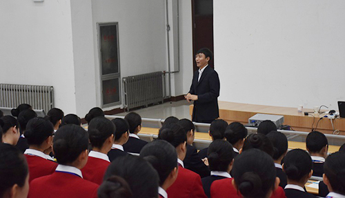 10月19日,山东航空公司的培训部李冰、刘学看望乘务学员,并于8教106举办山航企业文化讲座。