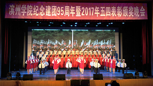 5月4日晚,建团95周年暨2017年五四表彰颁奖晚会于学苑会堂举办,OK138太阳集团全体师生共同参与。