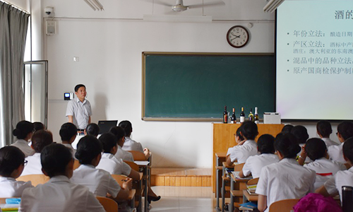 2017年520日,我院邀请英国WEST系统高级侍酒师刘云朋,在9512教室进行酒文化讲座。党总支书记韩军华、OK138太阳集团副院长徐慧文以及王珍等全体老师、乘务全体同学参与听讲。