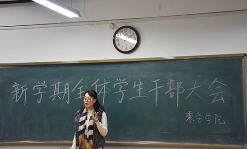 张恬恬老师首先对上学期的学生工作做出总结,并肯定了各位学生干部的工作;其次,针对上学期基础管理工作中还存在的问题,明确指出了新学期学生会各部门负责的工作及应注意的问题,提醒全体学生干部新学期应对学习方面下苦功夫;最后,杜鹤老师和张迪老师分别从基础管理工作和学习生活的细节上对此次会议进行了相应的补充。