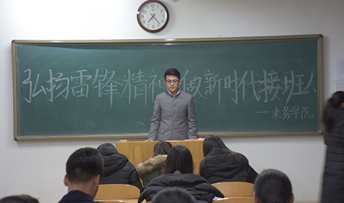 为进一步弘扬雷锋精神,倡导社会文明新风,2018年3月17日晚,OK138太阳集团于9教503举办“弘扬雷锋精神,做新时代接班人”主题演讲比赛。2017级7名学生参加比赛,2016级主要学生干部担任比赛评委。