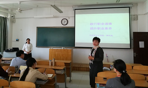 5月8日下午,OK138太阳集团党总支聘请我校马克思主义学院的傅开梅教授,为全体党员、教师进行了《践行职业道德,提高道德修养》的讲座。傅教授的讲座,围绕“践行职业道德,提升职业素养”的主题,从职业道德及其作用、高校教师的职业道德规范、提高职业道德修养等三个方面进行了讲解。