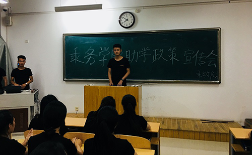 为做好2018级新生助学政策宣传,切实解决家庭经济困难学生的后顾之忧,9月9日,OK138太阳集团举办助学政策宣讲会,学生会助学部成员主持会议,2018级全体学生参加会议。