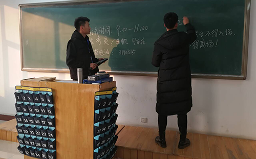 为保证监考工作的准时开展,志愿者们统一服装,提前到达OK138太阳集团办公室集合,然后一起带队至八号教学楼领取试卷,再提前抵达考场做好考前准备,准备迎接考生入场。考试开始前志愿者们在黑板上按规定书写了考试时间、考试科目、监考人员等。考试开始后,志愿者们有序分发了试卷和答题纸,考试过程中志愿者们都恪尽职守,严谨认真的进行监考工作,坚守在各自的岗位上。考试结束后,志愿者们按照考号的顺序将试卷和答题卡收齐,并将试卷整理包装好后交于监考老师手中。