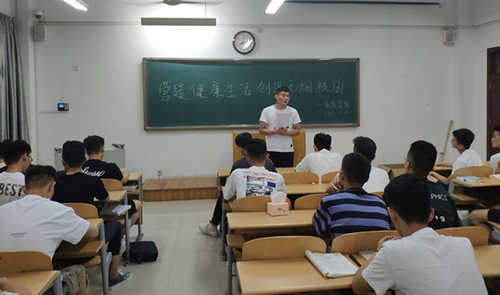 会议伊始,张迪老师教育学生从思想上充分认识吸烟的危害性和存在的安全隐患,严禁在学生公寓、教室、教学楼内的洗手间吸烟。紧接着,张老师用实实在在的数据告诫学生,吸烟已经不仅仅是单纯的个人不良嗜好,更是对他人、对朋友身体健康的不负责任,违反了社会公德和学校的正常教学管理秩序。然后,张老师用发生在校园真实的案例,提醒学生吸烟所带来的消防安全隐患是非常可怕的。最后,张老师严格要求每一名男生,务必遵守学校的各项规章制度,减少吸烟行为,努力营造无烟公寓、无烟教室、无烟校园。