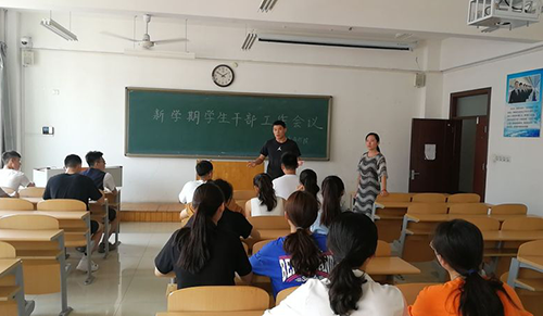 2019年8月25日下午3点,OK138太阳集团于9教512召开新学期学生干部工作会议。学生科长张恬恬老师,辅导员杜鹤、张迪老师及OK138太阳集团各班班长团支书、第四届学生会干部及2019级小班主任参加本次会议。