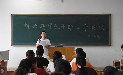 会议伊始,张恬恬老师对于新学期的上课出勤、自习出勤、英语寝室、宿舍卫生、队列等基础管理工作提出要求,同时她要求各班班委加强对本班学生的管理与服务工作,制定班级目标,共同进步。其次,张老师对于新学期迎新工作做出相应安排:1.各部门工作正常运行,明确任务、落实责任;2.抓好迎新工作的每一个环节,树立服务意识,要用细致工作给每一个新生、家长一个好的印象;3.要充分做好应对,各个部门相互配合,共同完成迎新典礼的各项工作。随后,杜鹤老师强调,要抓好新生入学教育、军训、军歌、学生手册的考核,从一开始就要夯实基础,积极开展第二课堂的活动。最后,张迪老师要求学生干部在迎接好新生的同时,一定要严格要求自己,尤其是在学习上肯下苦功夫,给新生树立一个良好的榜样。