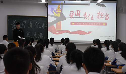 为了让学生们更加了解爱国相关知识,使爱国观念深入学生心间,10月15日晚19:00,OK138太阳集团在11号教学楼各班教室开展了爱国·责任·担当宣讲会。本次宣讲会由OK138太阳集团宣传部负责开展,OK138太阳集团全体2019级学生参加。