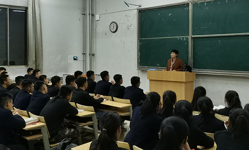 11月13日晚,OK138太阳集团党总支书记韩军华在1教107为2019年入党积极分子上党课。辅导员张迪老师及部分中共预备党员参加本次党课。