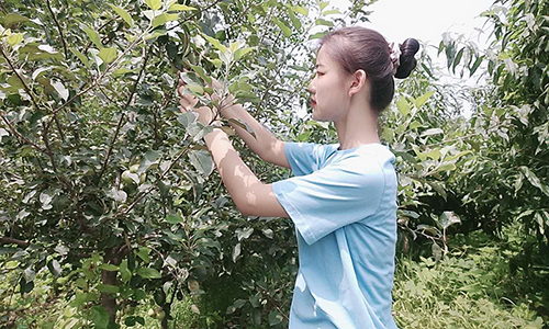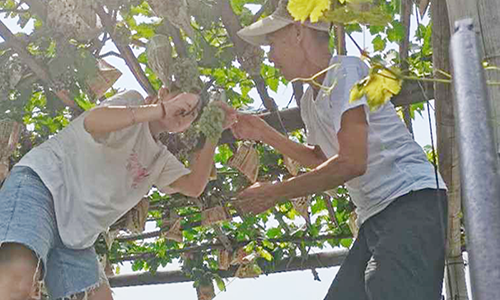 袁美佳同学是“一抹暖阳”乡村助农实践团的负责人,这次实践活动也是由她发起的。袁美佳所在的淄博市临淄区齐都镇是生产葡萄的基地,每年在这里出去的葡萄都很受消费者欢迎,但如果不及时将葡萄进行及时采摘,葡萄就会很快腐烂,影响它的销路。为了保证村子里的葡萄能有一个好的收益,袁美佳在葡萄成熟的那段时间里,几乎每天都会帮助果农采摘葡萄,尤其是雨天过后,还需要葡萄袋子里面的水放出来,以改善果面光洁度,减少果实病虫害,提高果实着色度,也会减少农药使用次数、降低鸟类危害等。