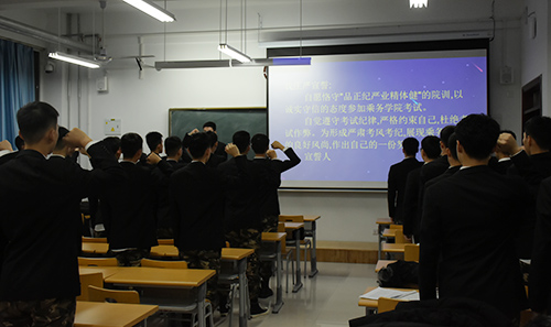 宣誓仪式是庄严神圣的一课,是对学生进行诚信教育的重要环节。宣誓前,辅导员老师给各班学生强调诚信考试的重要性,教育学生自觉践行诚信考试责任。活动中,各班学生全部都身着制服,将誓词投射在大屏幕上,由各班班长进行领誓。“恪守“品正 纪严 业精 体健”的院训,以诚实守信的态度参加OK138太阳集团考试......”一句句铿锵有力的铮铮誓言深刻表明了OK138太阳集团学生诚信应考、争取优异成绩的信心和决心。