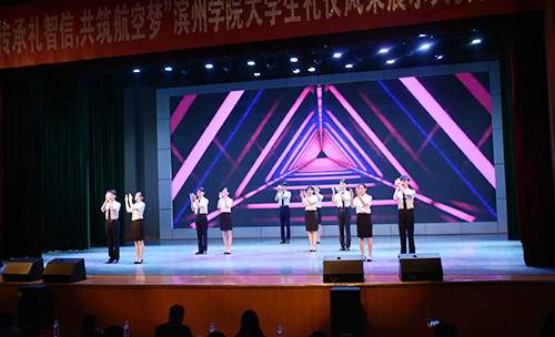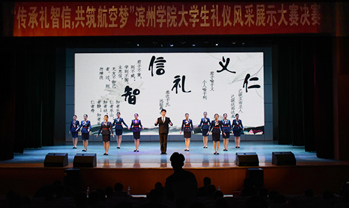 “传承礼智信,共筑航空梦”滨州学院大学生礼仪风采展示大赛是该校第四届航空文化节的一项重要活动。本次比赛提升了大学生的个人修养,进一步增强了大学生礼仪意识、人际沟通能力与交往艺术,为营造和谐文明的校园文化氛围起到了积极推动作用。