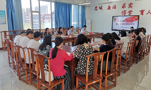 领导班子带头学、师生党员集中学、网络平台智能学、理论宣讲重点学、党课报告深入学,组织党总支理论学习中心组学习、教职工理论学习、邀请校领导、学校理论宣讲团成员、有关专家讲党课作报告,确保理论学习全覆盖、常态化、见实效。注重强化“学习强国”线上学习,在党员中树立“学习强国”数据统计排的不仅是名次,更是党组织的执行力凝聚力、号召力和党员的责任感以及担当意识的理念,上强国、学时政、比学习成为理论学习新风尚。注重加强党建理论研究,深化社会主义核心价值观学习教育,立项学校党建和思想教育研究课题1项,“奉献有我 践行有我”工程被确立为学校社会主义核心价值观精品工程。