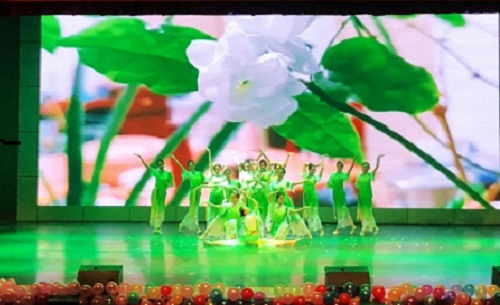 我校参赛舞蹈作品《茉莉花》,表达了人们对茉莉花的喜爱,表现了少女天真可爱、纯洁美好的形象,也委婉地表达了青年男女对爱情天真无邪的渴望,生动而含蓄地展示了人们对真、善、美的向往和追求。舞蹈把少女们爱美、爱花、惜花和对爱情羞怯、腼腆的心态与行为刻画得活灵活现、栩栩如生,完美体现了中国古典舞的“身”“韵”之美,具有很强的艺术感染力。