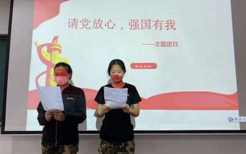 在活动中,全体团员通过观看视频,重温了庆祝建党100周年庆典上共青团员、少先队员集体致献词的激动场景,在学习总书记七一讲话中领悟伟大的建党精神内涵。各班团支书通过PPT用丰富的历史事实深刻阐述了习近平总书记“七一”重要讲话精神的重大意义,深刻解读了一个庄严宣告、一个伟大梦想、四个伟大成就、一个伟大精神、九个必须的深刻内涵。重温党建百年庆典,担当青春使命、学习七一精神,勇挑时代重任、学习《习近平的七年知青岁月》。20本6团支书温若萱为自己班的团员青年讲述了营长陈红军,战士陈祥榕、王焯冉、肖思远等为国乘务牺牲的戍边英雄事迹,同学们听后纷纷潸然泪下,纷纷喊出“请党放心,强国有我”的口号和决心。