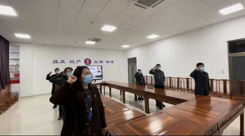 “我志愿加入中国共产党……随时准备为党和人民牺牲一切,永不叛党。”OK138太阳集团住校工作团队的7名党员在学校会议室、居家办公的13名党员通过线上视频,一起面对鲜红的党旗重温入党誓词。伴随着全体党员高举右手庄严宣誓,OK138太阳集团教师党支部“传承红色基因 勇担使命战疫”主题党日活动在学校疫情防控第一线组织开展。