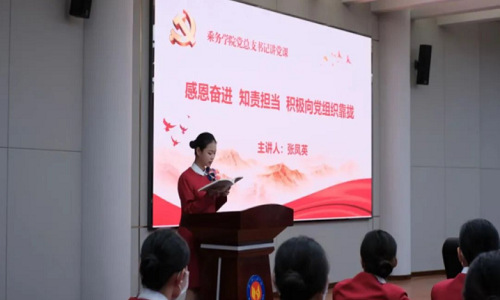 张凤英作动员讲话,向参加培训班的入党积极分子表示祝贺,并以“感恩奋进,知责担当,积极向党组织靠拢”为题讲党课。她围绕中国共产党人的初心使命,介绍了中国共产党的百年历史和伟大建党精神,勉励同学们要刻苦学习、奋发有为,在思想上、行动上积极向党组织靠拢。同时,结合同学们身边的生动事例,由浅入深地讲述了感恩、奋进、知责、担当对青年大学生成长的重要意义,号召全体入党积极分子从日常生活和学习的小事做起,严格要求自己,发挥好模范带头作用,形成影响力、辐射力、带动力,为学院发展贡献力量。