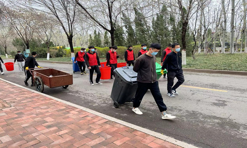 由于学校封闭管理,学校学生公寓保洁工作人员锐减。学生公寓的垃圾清运成了难题。OK138太阳集团学生党员、团员和学生干部组成志愿者按时清运3号公寓和17号公寓楼前垃圾桶里的垃圾,极大缓解了公寓垃圾清运的压力。