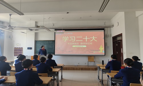 首先,团支书白瑞雪领学党的二十大报告原文和中国共产党章程,学习领会党的二十大精神,坚持全面准确、深入理解内涵,精确把握外延。团支书强调,团员青年要深入学习宣传贯彻党的二十大精神,牢牢把握过去五年工作和新时代十年伟大变革的重大意义,把握新时代中国特色社会主义思想的世界观,把握以中国式现代化推进中华民族伟大复兴的使命任务,把握以伟大自我革命引领伟大社会革命的重要要求,把握团结奋斗的时代要求,理解“两步走”的关键战略安排,明确新时代新征程中国共产党的中心任务。随后,通过观看习近平总书记在党的二十大开幕会、闭幕会上的相关讲话,学习讲话精神,使广大团员青年进一步理解党的二十大召开的重要性与历史意义,增进对党的二十大精神的理解。最后,团支书邀请几位同学上台分享了本次主题团日活动的学习心得,并进行活动总结。