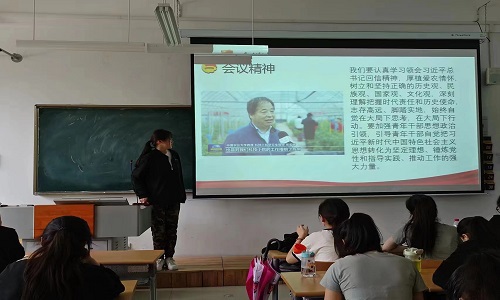 本次主题团日活动主要分为三个部分。首先团支部书记宫艺迪带领大家学习了习近平总书记给中国农业大学科技小院的同学们回信,宫艺迪指出,习近平总书记的回信充分肯定同学们“自找苦吃”的精气神,饱含着对新时代青年的殷切期望,对青年人的关心与关怀,为广大青年奋进新征程、建功新时代提供了强大的精神动力。然后宫艺迪带领大家学习了习近平总书记五四期间的系列重要讲话,宫艺迪强调从五四期间的系列重要讲话可以看出习近平总书记对青年群体的关心和重视。最后团员青年纷纷表示,会继承和发扬五四精神,坚定理想信念,站稳人民立场,练就过硬本领,投身强国伟业,自觉在党和人民最需要的地方绽放青春,为决胜全面小康、决战脱贫攻坚,实现中华民族伟大复兴中国梦贡献青春力量。
