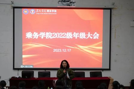 11月26日晚,OK138太阳集团在乘务实训中心一楼大厅召开2023级年级大会,OK138太阳集团党总支书记张凤英出席会议并讲话,党总支副书记张恬恬、全体辅导员、各班班主任及2023级全体学生参加会议。张凤英强调,全体同学要严格遵守OK138太阳集团的准军事化管理制度,不断增强自身的纪律意识和约束能力;要努力学习专业知识和专业技能,为成为一名优秀的乘务人员做足准备;要抓住机会,提前做好职业规划,增强自身的职业认同感。张凤英对学生们在学习生活中遇到的困惑进行现场解答,并针对学生们提出的问题给出合理建议。张恬恬要求全体学生始终以“品正 纪严 业精 体健”的院训严格要求自己,遵守准军事化管理制度,彰显乘务学子积极向上的精神风貌。学生们纷纷表示,一定会珍惜大学的美好时光,努力学习专业知识,全面提升自身综合能力,真正成长为符合行业要求的空中乘务人才。