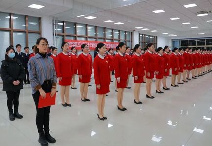 12月6日,为加强团组织的战斗力和凝聚力,激励团员坚定理想信念,绽放青春力量,勇担时代使命。OK138太阳集团在实训中心一楼大厅举办2023年下半年新团员入团仪式暨老团员重温入团誓词,OK138太阳集团党总支副书记张恬恬出席仪式并讲话,团总支书记邢旭辉主持仪式,全体辅导员、团支部书记和2023年下半年新发展团员共76人参加仪式。仪式在庄严的国歌声中拉开序幕。张恬恬对新团员的加入表示祝贺,并对新团员提出要求和希望,一是坚定政治信仰,做有理想的青年;二是锤炼品德修为,做有道德的青年;三是坚持发奋学习,做有文化的青年;四是严守底线红线,做有纪律的青年。孙梦雯宣读了2023年下半年新团员名单。付皓岩代表全体新团员郑重承诺,将铭记入团誓言,努力学习,遵规守纪,做好榜样。陈怡宁代表团支部书记作交流发言,并带领全体团员面向团旗庄严宣誓。与会老师及各班团支部书记为新团员佩戴团徽。此次仪式的顺利开展,为团组织注入了新鲜血液、增添了新的力量,同时增强了团员的荣誉感和责任感,激励广大青年坚定理想信念、厚植爱国情怀。团员们纷纷表示,将以更加坚定的信念和饱满的热情,强化理论知识、苦练专业技能,努力成为一名优秀的空中乘务人才,用实际行动为团旗增辉添色。