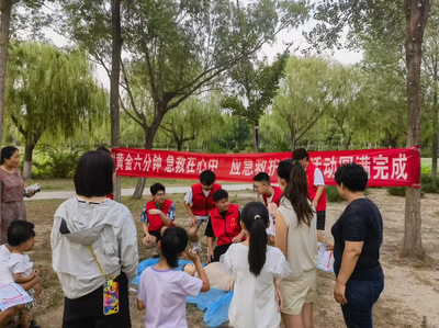 7月20日-25日,“黄金六分钟 急救在心中”应急救护实践团赴滨州市无棣县棣丰街道社区周边开展防溺水、应急救护知识宣传和技能宣讲。实践中,志愿者们针对经常在这片水域附近游玩的人群开展防溺水的“六不准”和“四不要”知识宣传,并对周边社区来往的人群分发和讲解防溺水宣传海报。在模拟演练过程中,志愿者邀请大家一同参与,现场演示了人工呼吸、心肺复苏等溺水抢救方法,让居民在轻松愉快的氛围下掌握防溺水与应急救护的知识,树立“安全第一,预防为主”的意识,进一步增强了未成年人及其家长的安全自救、互救能力。