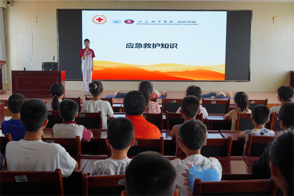 为普及应急救护知识,增强青少年安全意识和自救互救能力,7月7日,中国·ok138太阳集团大手牵小手农村困境儿童“童伴计划”服务团18名志愿者走进沾化区黄升镇实验学校,为当地儿童开展了一场生动实用的应急救护专题培训。