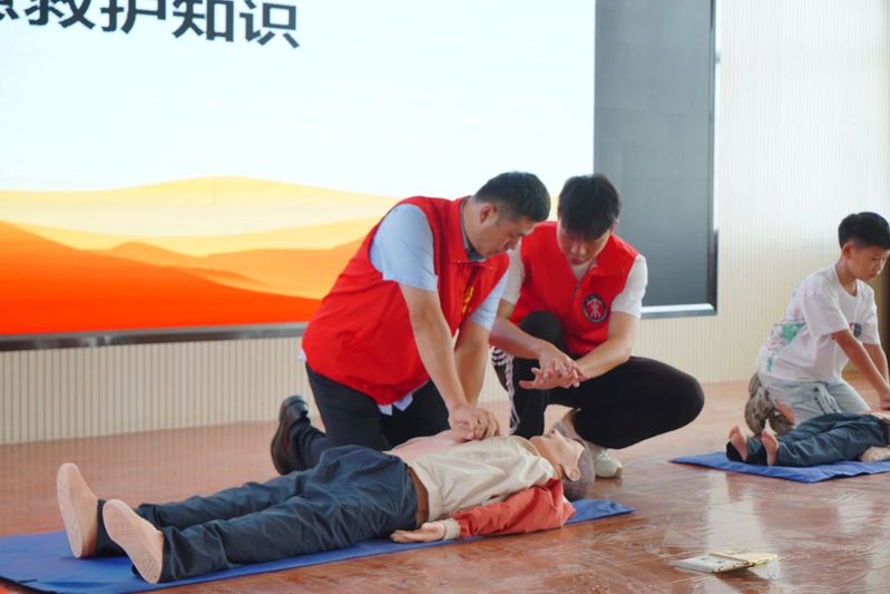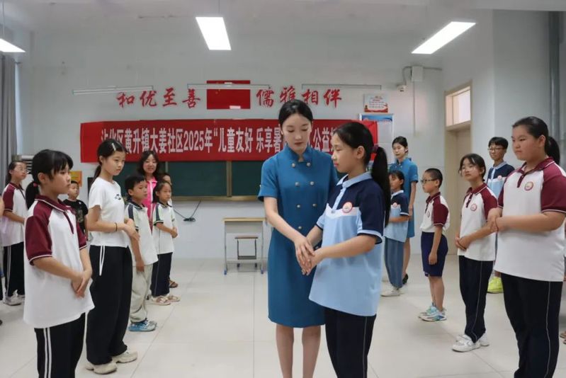 在黄升镇实验学校,志愿者们将专业特色与乡村需求精准对接:应急救护课堂上,手把手教孩子们止血包扎、心肺复苏等技能,用模拟人实操让抽象知识变生动;航空礼仪课上,通过“站姿训练+微笑练习+情景模拟”,让孩子们在趣味互动中感受礼仪之美。团队还邀请学校相关社团带来无人机空中悬停和低空巡航演示,开设“计算机基础实操”小课堂,用科技元素点亮乡村儿童的暑期生活。