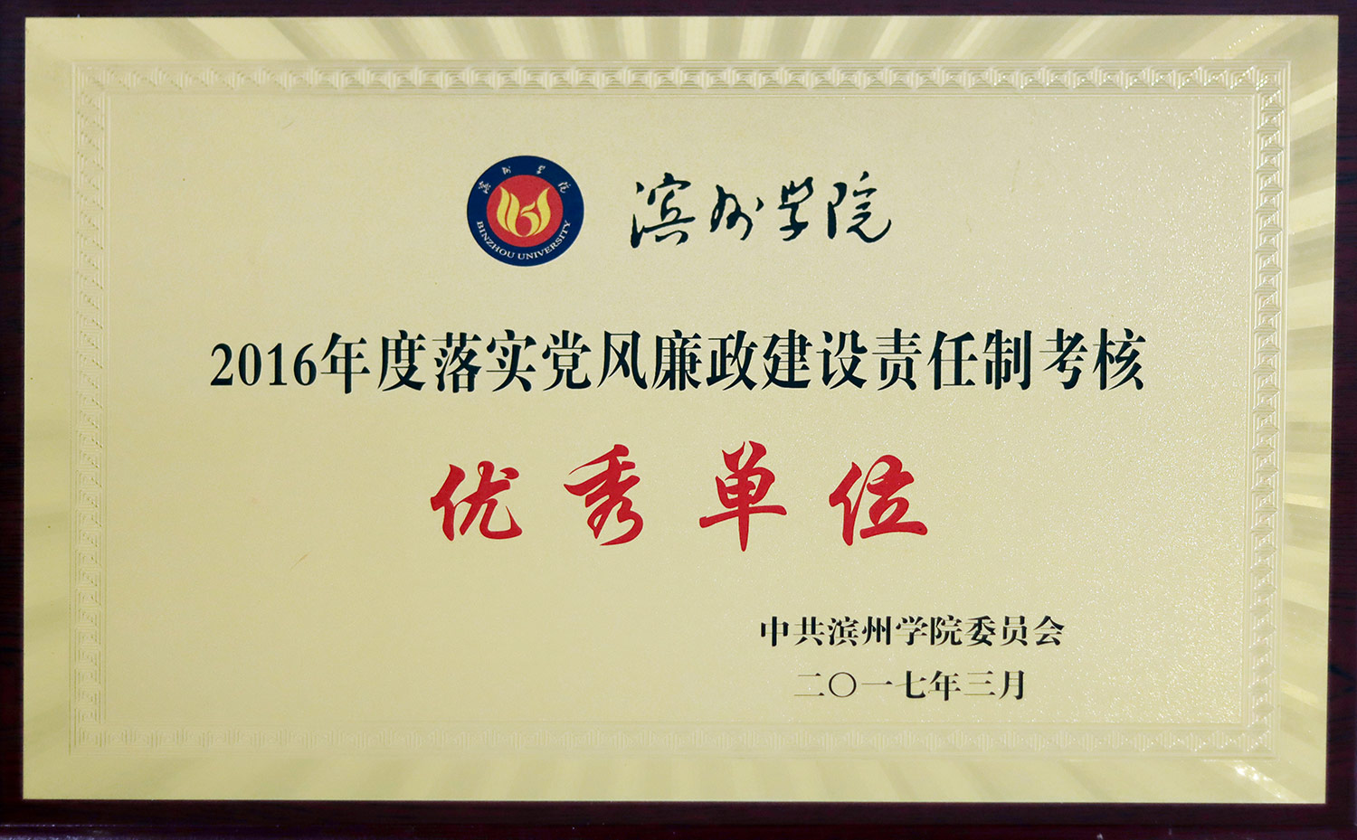 滨州学院2016年度落实党风廉政建设责任制优秀单位