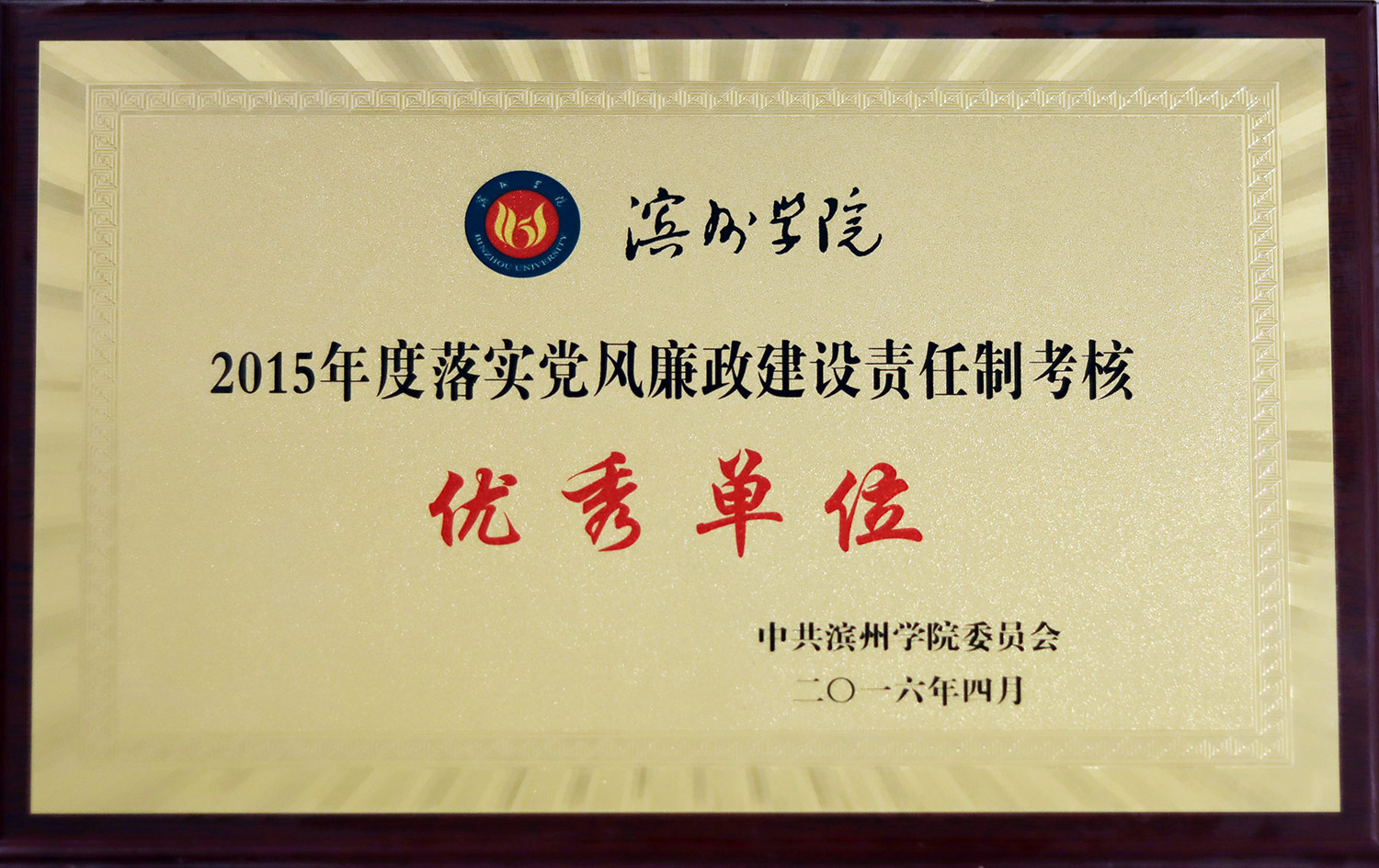 滨州学院2015年度落实党风廉政建设责任制优秀单位